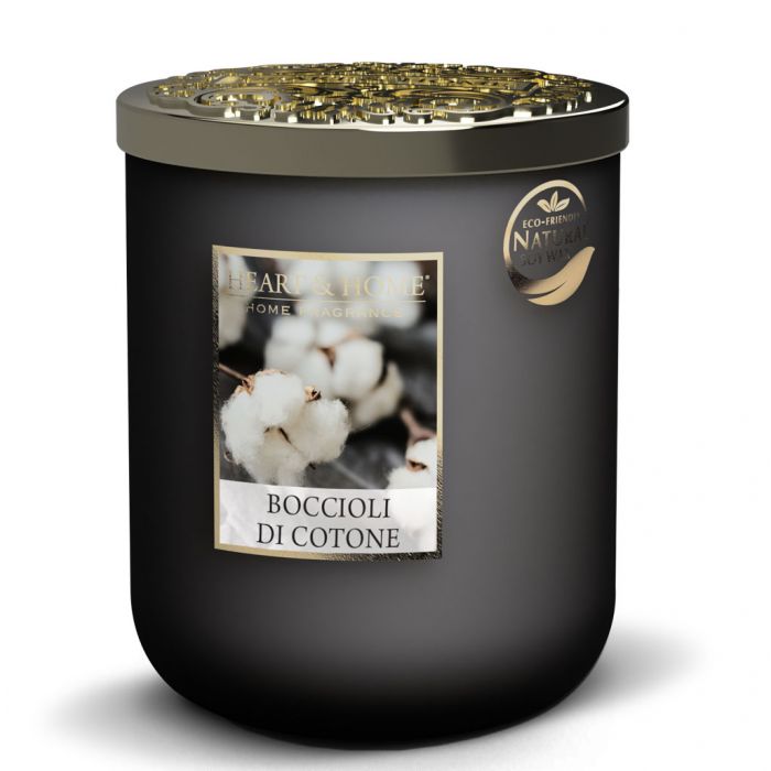 La candela in cera di soia grande Heart&Home è 100% naturale, priva di paraffina e biodegradabile. La cera di soia brucia più lentamente rispetto alle candele tradizionali, non rilascia fumo e rende la fragranza più persistente.