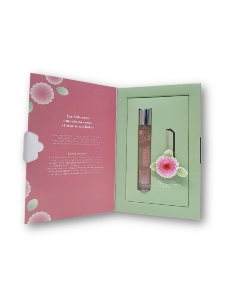 Un raffinato cofanetto che celebra la dolcezza, dai colori delicati: rosa e verde pastello. Racchiude l’edizione limitata da 15 ml dell’Eau de Toilette Peonia Segreta, una fragranza intensa e avvolgente, che unisce luce e mistero in un flacone