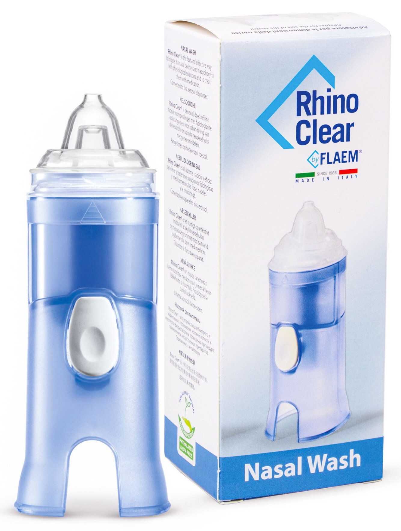 Rhino Clear è ideale per il lavaggio nasale di adulti e bambini. Nebulizza la soluzione e rimuove le secrezioni, le polveri e le sostanze nocive all’interno dei seni paranasali, raccogliendole in un’apposita camera