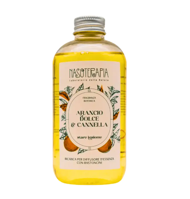 Ricarica per profumatore d’ambiente della linea “Nasoterapia”. Ogni fragranza contiene un’alta concentrazione di oli essenziali puri e un esclusivo utilizzo di colori per alimenti