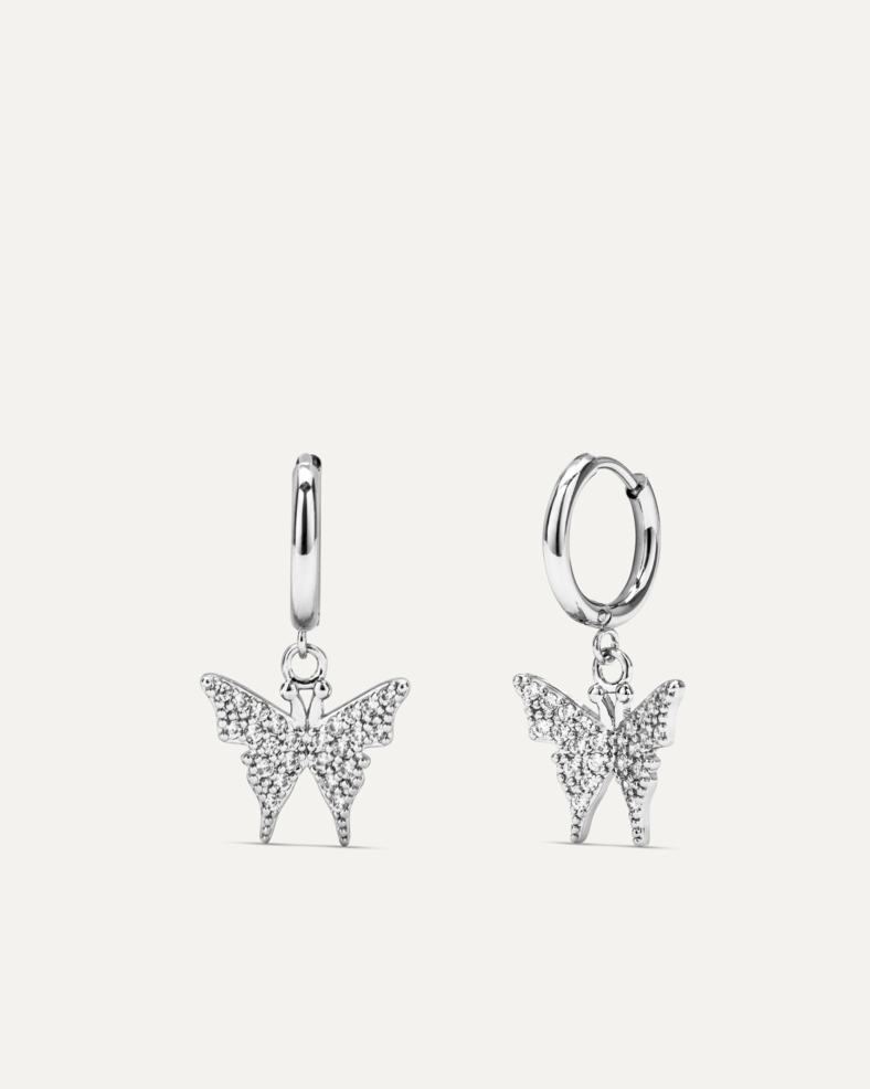 Il design con cerchietto medio e farfalle pendenti li rende un gioiello giocoso e incantevole, ideale per chi cerca qualcosa di speciale e unico.